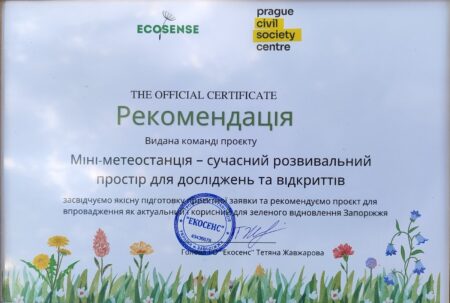 НАЙКРАЩОГО екологічного проєкту “Міні-метеостанція сучасний розвивальний простір для досліджень та відкриттів!”, впровадження його в простір закладу та щоденне життя дітей, а його реалізація робить значний внесок у зелене відновлення Запоріжжя